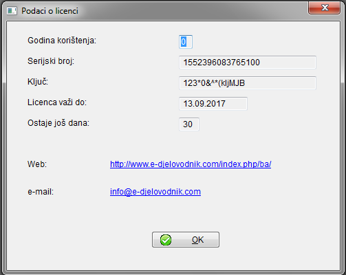 - ključ (važeći ključ licence);
